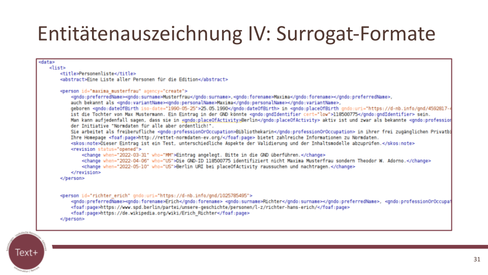 Abb. 6: Surrogat-Formate zur Entitätenauszeichnung als einer von vier Wegen (Uwe Sikora (SUB), Juni 2022, CC BY SA)